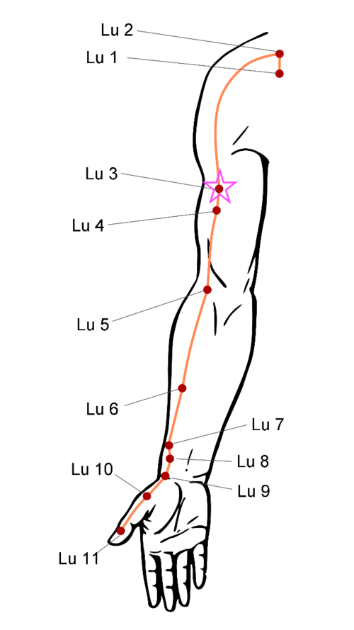 Then next picture: Press each side of the arm on the point of the star with your middle finger. Start with one side, then the next. Press minimum of 1 min on each side, as you pay attention to that point and what arises within you.